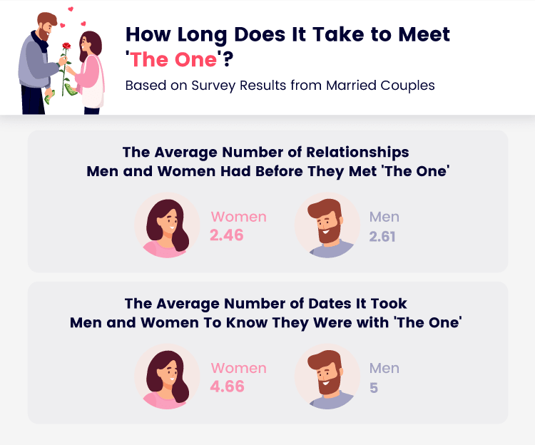 After they met and started dating their current committed partner, it took women an average of 4.66 dates to realize they were with the one and men an average of 5.